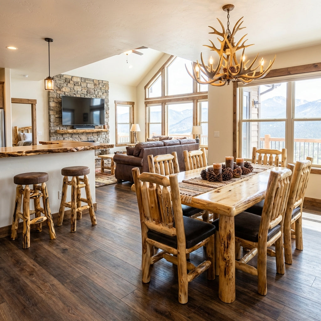 Rustic Living showrooms are proud to provide customers with the highest quality aspen furniture that is custom made in Alamosa, CO. We invite you to imagine the possibilities of transforming your home, lodge, restaurant, or resort into a rustic oasis with our extensive line of rustic log furniture and rustic farmhouse furniture.