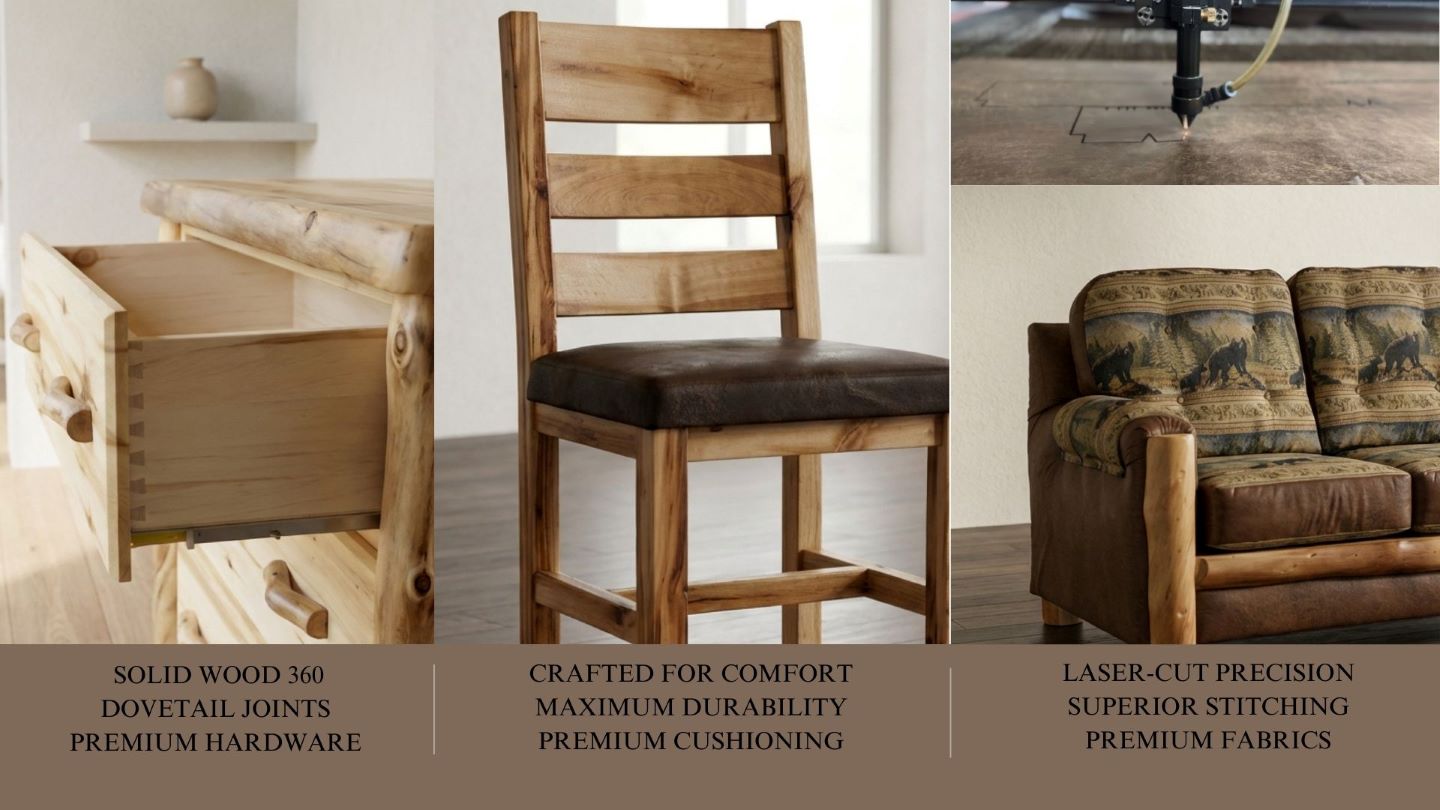 Thirty years of building furniture has taught us one thing: log and farmhouse furniture should be built right the first time. For three decades, we’ve been turning raw logs into solid, dependable handcrafted furniture that’s made to be used, enjoyed, and passed down. Simple, sturdy, and built with pride—that’s how we’ve always done it.