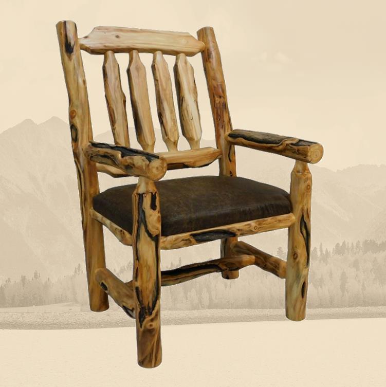 Rustic Log Timberland Dining Chair with Arms – Solid Aspen Wood Comfort for Your Kitchen